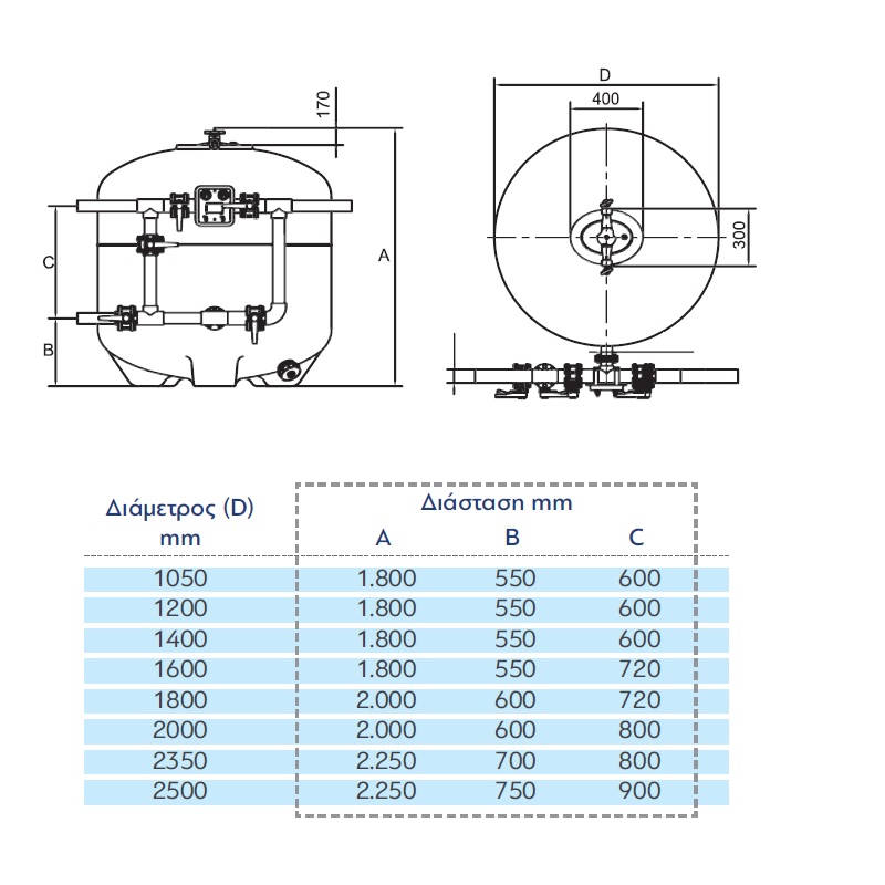 Includes air-relief valve, pressure gauge και sight glass (400mm).
