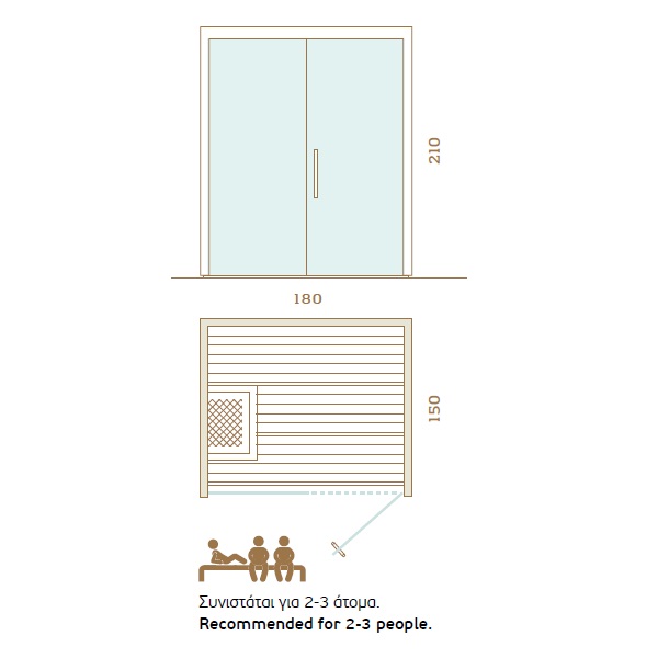 • Heater: Auroom Aura 4.5 kW ( sauna size 120x180), 6 kW (150x180, 150x200), 9 kW (200x200, 200x250).